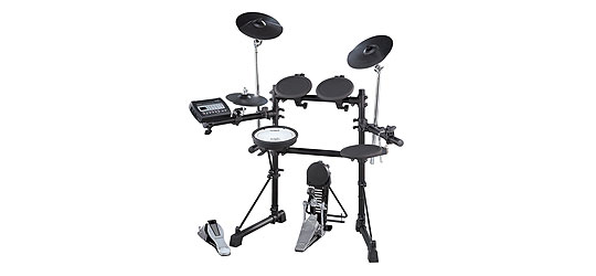 Roland :: HD-1 - V-Drums Lite [ Info ] Das neue elegante Drum Kit für alle Rolands V-Drums sind die wohl populärsten elektronischen Drums weltweit, aber nicht jeder hat den Platz oder das Geld für ein normal aufgestelltes Schlagzeug-Set. Hier kommt das neue Roland HD-1 ins Spiel. Es basiert auf der berühmten V-Drums-Technologie, ist aber besonders einfach zu bedienen. Außerdem ist es dank der neu entwickelten Fußmaschine, gepolsterter Tom Pads und des Mesh Snare-Fells extrem leise. Die Kabel zu den Pads sind im Ständer verlegt. Das HD-1 ist superkompakt und elegant — ideal für zu Hause, für Musikschulen oder auch im Studio. Für einfachen Aufbau und Transport sind die meisten Komponenten des HD-1 direkt an das Stativ montiert. Nehmen Sie das HD-1 Drum Set einfach aus dem Karton und spielen Sie! [ Die wichtigsten Features ] Einfach aufzubauen und zu bedienen Kompakt und elegant Erstklassige Klangqualität 10 Drum Kit-Programme 10 Preview-Programme integriertes Metronom MIDI OUT-Anschluss