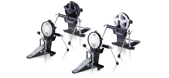 Natürliches Triggering mit Doppelpedal-Unterstützung Mit dem KD-120 steht jetzt ein Bass-Drum Trigger zur Verfügung, der auf dem bahnbrechenden Mesh Drum Head Design der Roland V-Drums basiert. Damit reagiert er extrem sensibel auf alle spielerischen Feinheiten und bietet ein absolut natürliches Spielgefühl mit perfektem Rebound-Verhalten bei geringster Geräuschentwicklung. Zum Spielen wird eine konventionelle Fußmaschine verwendet (nicht im Lieferumfang enthalten), so daß keinerlei Umgewöhnung nötig ist. [ Die wichtigsten Features ] Stabiler 12“ Kick Drum Pad-Trigger mit super-akkuratem Triggering und natürlichem Rebound-Verhalten Revolutionäres Mesh Head-Trommelfell mit geringem Spielgeräusch Kann mit jeder Standard-Fußmaschine gespielt werden, inkl. Double Bass Pedals Vierbein-Stativ bleibt auch bei kräftiger Spielweise stabil Triggert das V-Drum-Modul TD-10 und weitere Electronic Percussion Module mit Trigger-Eingängen (z.B. TD-7, TD-5, SPD-20 etc.) Attraktives Design - optimal für Live-Auftritte