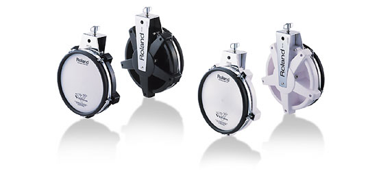 Rimshot-fähige Pads Die neuen 8" zwei-Zonen-V-Pads besitzen Rolands neueste Dual-Triggering-Technologie, was zu besonders konsistentem und präzisem Positional Sensing zwischen Fell und Rand führt. Diese super-robust verarbeiteten Pads der neuesten Generation sind in schwarz (PD-85BK) und weiß (PD-85WT) mit verchromten Klammern erhältlich. Wenn sie als Toms in Verbindung mit einem TD-20 oder TD-12 Sound Modul verwendet werden, kann man darauf auch Rimshots spielen, wobei der Sound entsprechend der Anschlagstärke variiert.