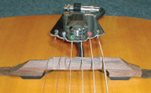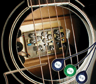 Die einzigartige Installation im inneren unter der Brücke der Gitarre erzeugt einen viel wärmeren und natürlichen Ton als unter Sattel-Tonabnehmer – dies bietet eine hohe Ausgangsleistung ohne Feedback.